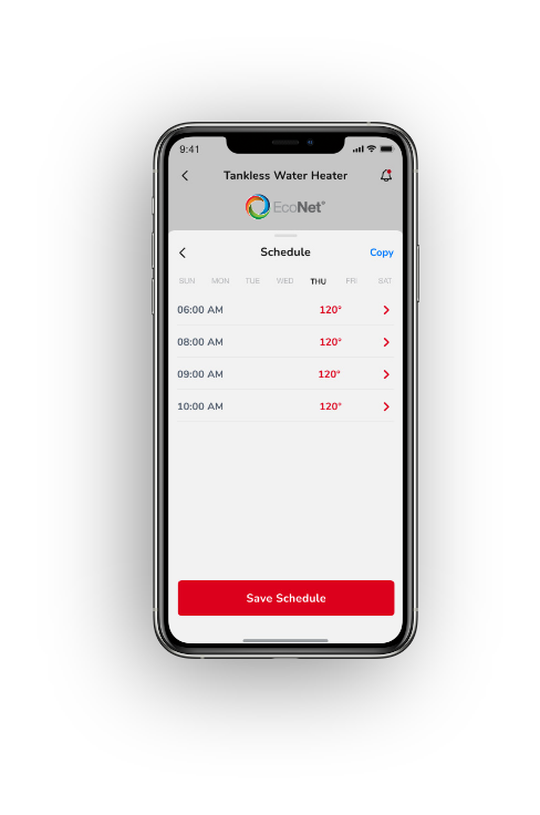 Enjoy complete control of your water heater—from adjusting water temperature to tracking energy usage—all from a smart phone9 (select models only)